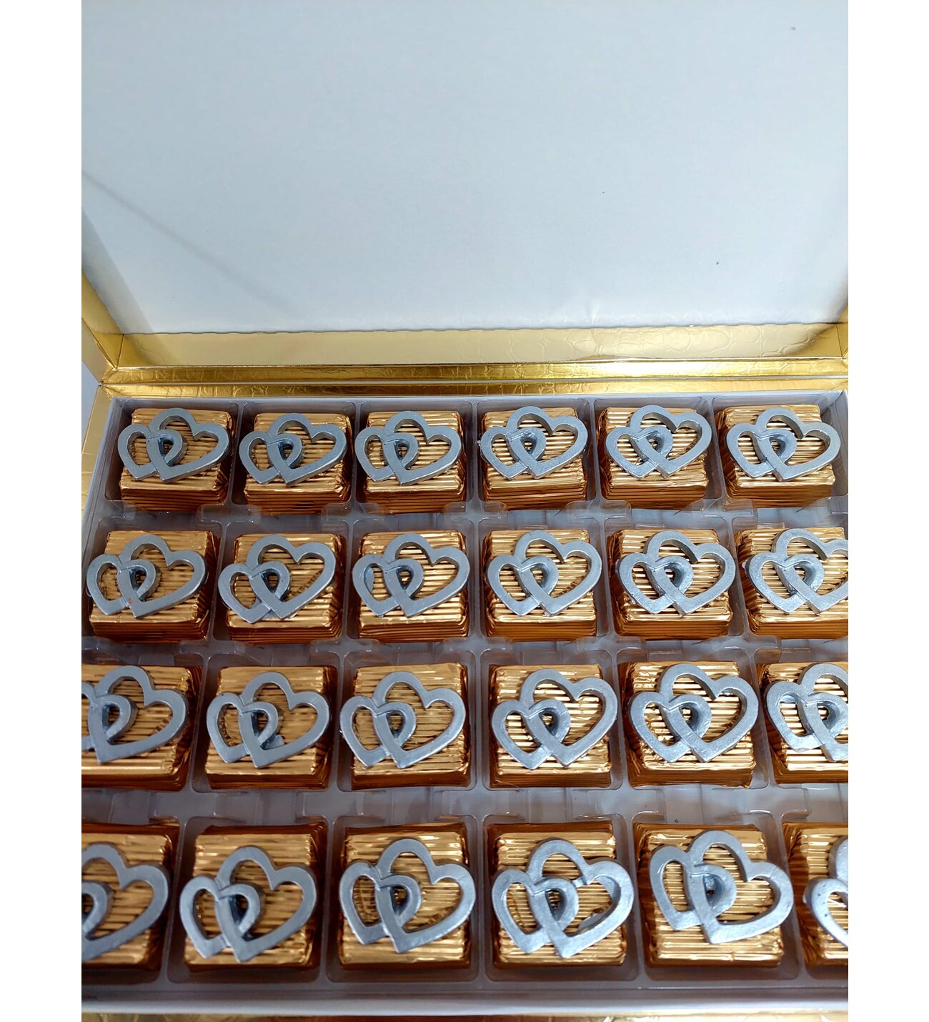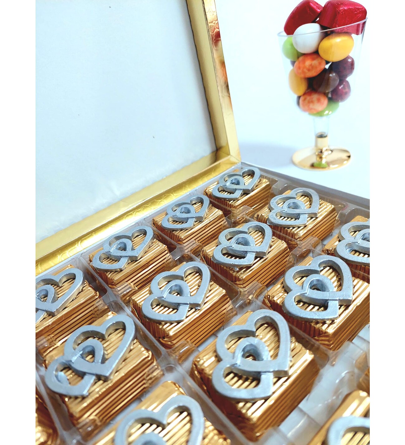 Hediyelik, Gümüş Çift Kalp, Gold Kutu Kalın Madlen, Sevgiliye Evlilik, Nişan Temalı Madlen Gold Kutu , Special Hediyelik, Gümüş Çift Kalp Kalın Madlen Special Çikolata Extra Çikolata ile hazırlanmıştır.