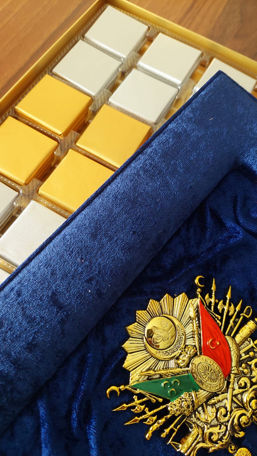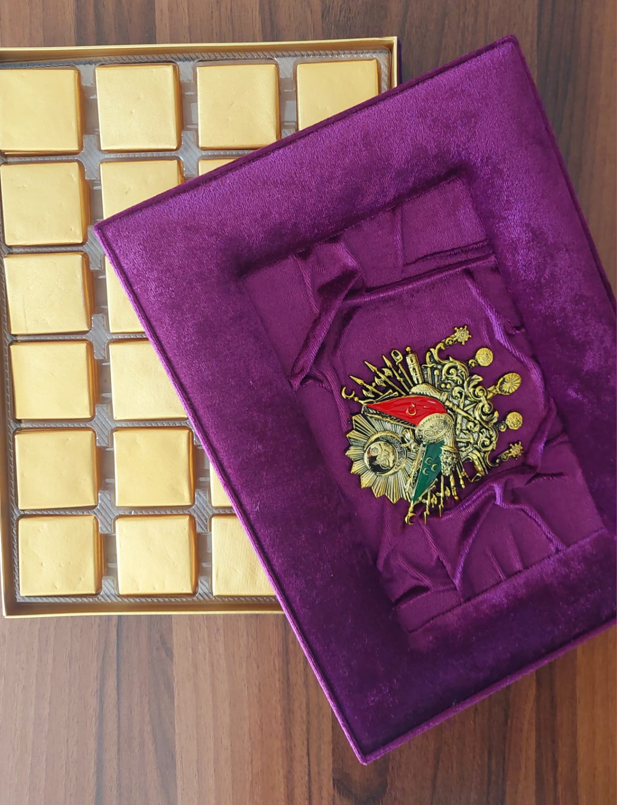 Tuğra Temalı Lüks Kutu. Hediyelik, Bayramlık ve Misafirlik Çikolata kutu. Special Çikolata Extra Çikolata ile hazırlanmıştır.
